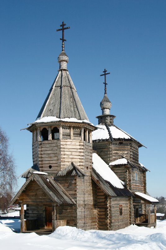 Подробное описание Воскресенской церкви в музее деревянного зодчества в Суздале.