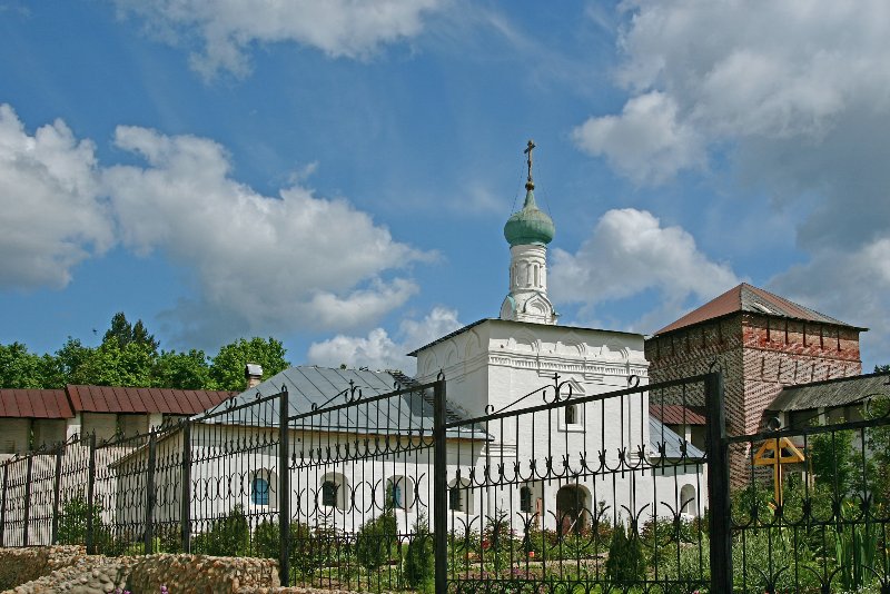 Великолепна и каменная ограда монастыря. Общая длина стен – 673 метра, башен в стене – 6, у каждой собственное имя: Тайницкая, Круглая, Оружейная, Поваренная… Стены строились всерьез, не просто как ограда, но как оборонительное сооружение на случай нападения врагов.