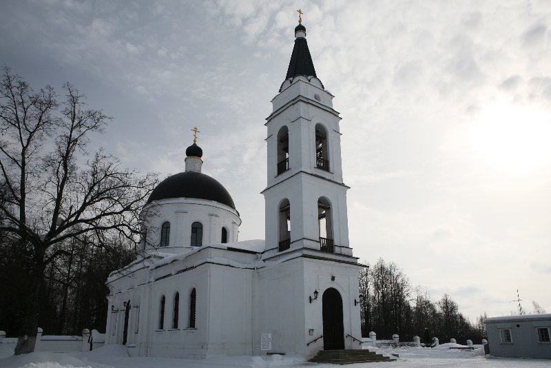 Известно, что М.В. Алсуфьева пожелала строить новый храм не в самом селе Петрове, на месте старого храма и в тесном окружении крестьянских жилых зданий, а весьма удачно избрала новое место - на возвышении, между селами Петровым и Мансуровым, на расстоянии версты от того и другого, и этим как бы уравнивая в правах оба старых прихода и делая новый, одинаково доступным для всех окрестных жителей.