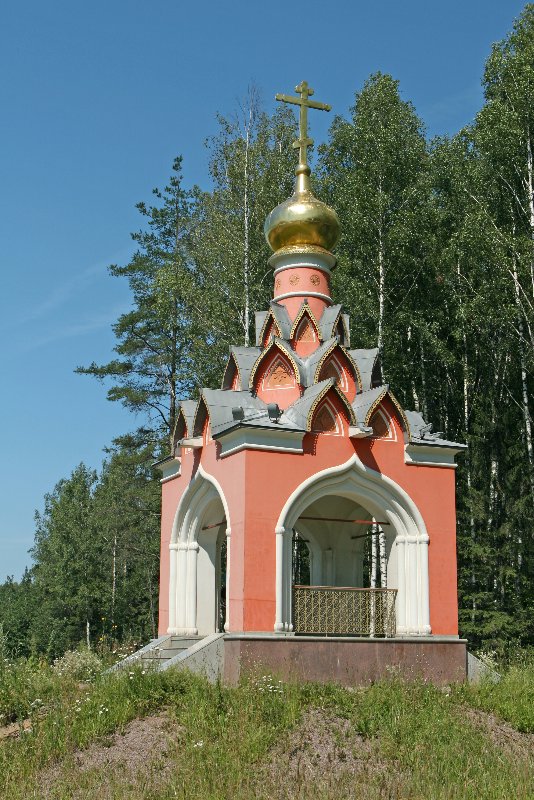 Внутри небольшой стилизованной под старину часовни с огненным завершением расположен источник с изображением древнего христианского символа - рыбы. Часовня поставлена на небольшой возвышенности, так, что ее хорошо видно с трассы. Она представляет собой куб с четырьмя арочными проемами, обрамленными перспективными порталами, с "огненным" завершением и одной главкой. Из куба в центре часовни постоянно течет вода, и многочисленные посетители охотно набирают ее в бутылки.