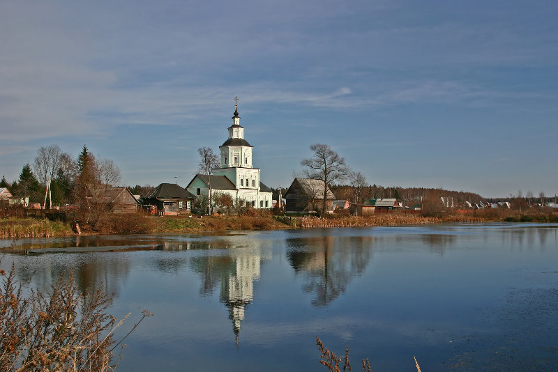 дороги храм виден с самой выгодной и живописной стороны – он отражается