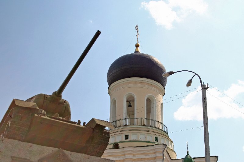 церковью был установлен мемориал – танк Т-34 и Вечный Огонь, а в самой