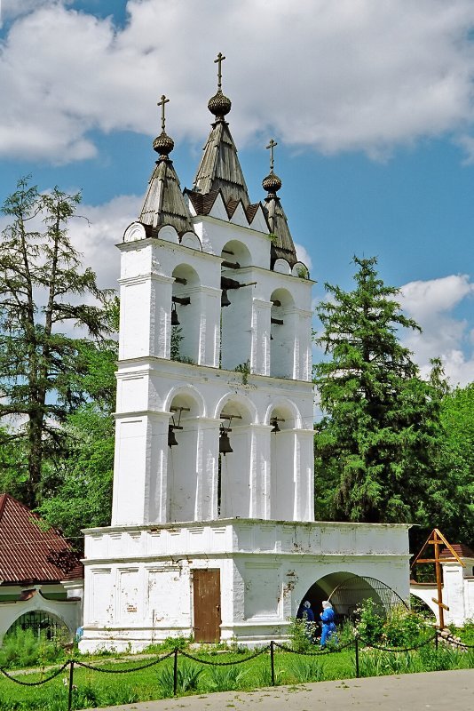 оригинальная двухъярусная звонница на высоком основании, близкая по типу