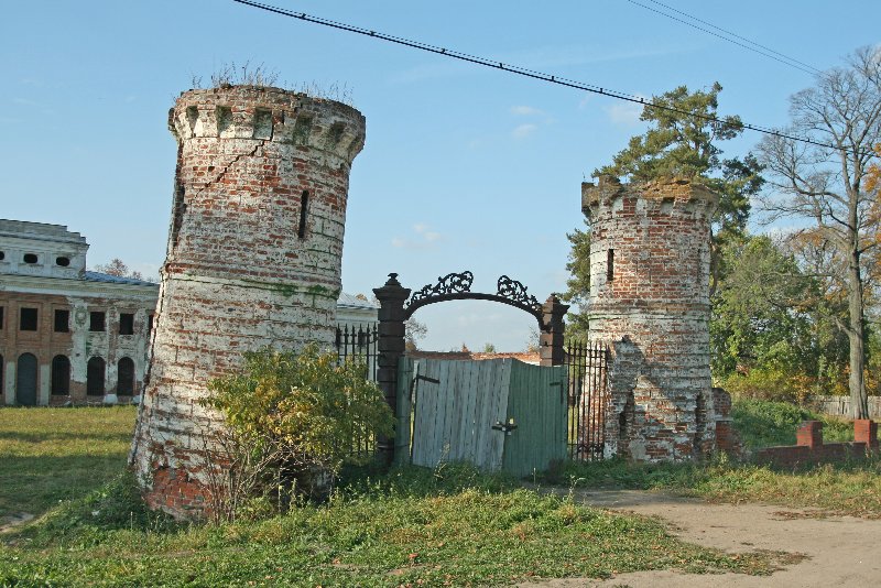 с высокими башнями в стиле раннего русского романтизма. Напротив ворот в
