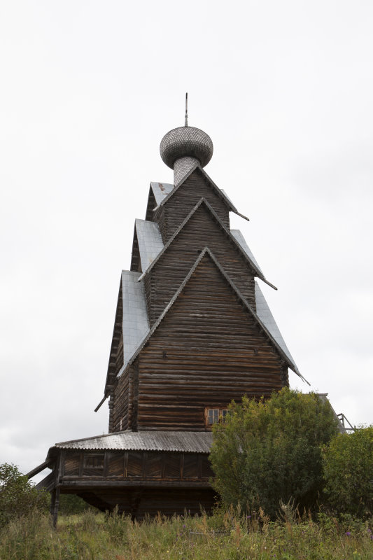 словно наконечники стрел, завершениями. Верхние ярусы храма срублены "в
