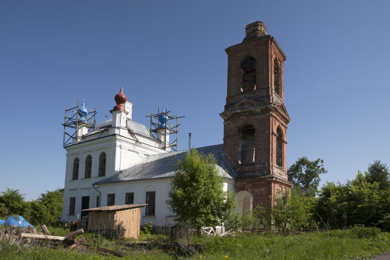 двусветный храм очень живописно смотрится с дороги, ведущей мимо села.