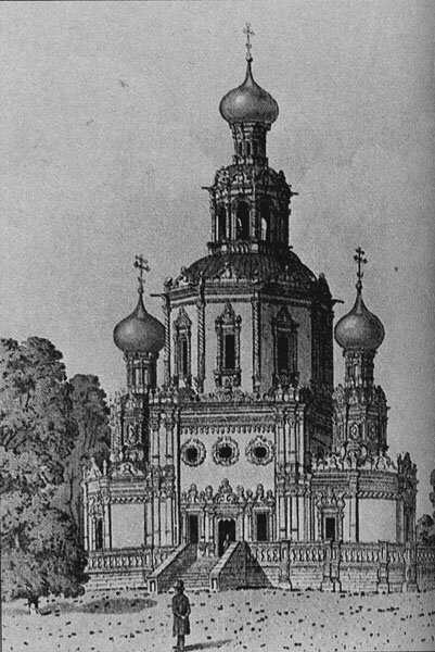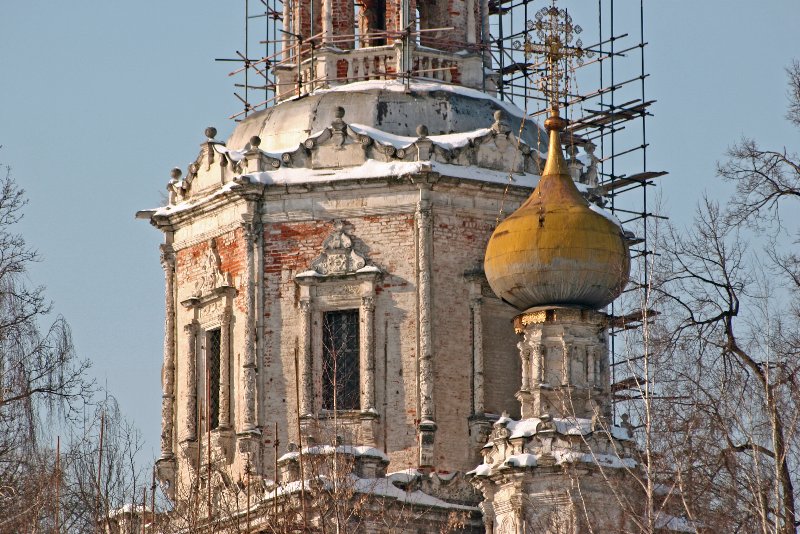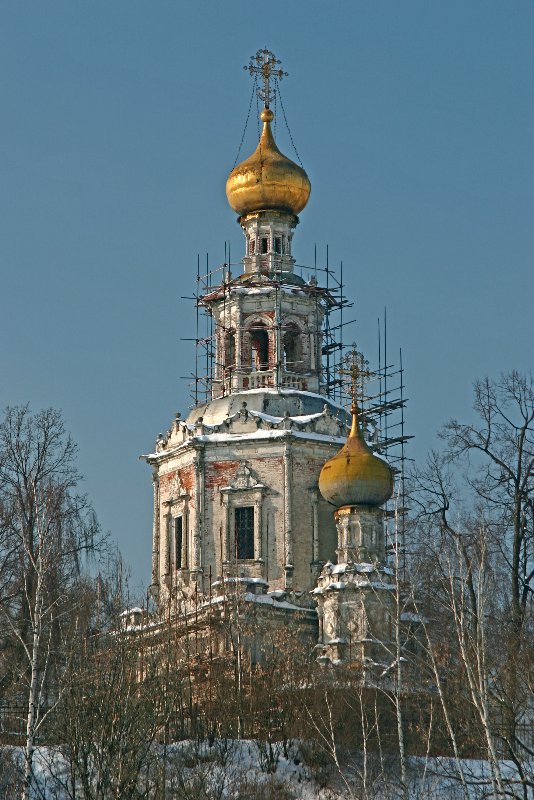 еще не достроен и стоит в лесах, а вокруг – старинное село, а не большой